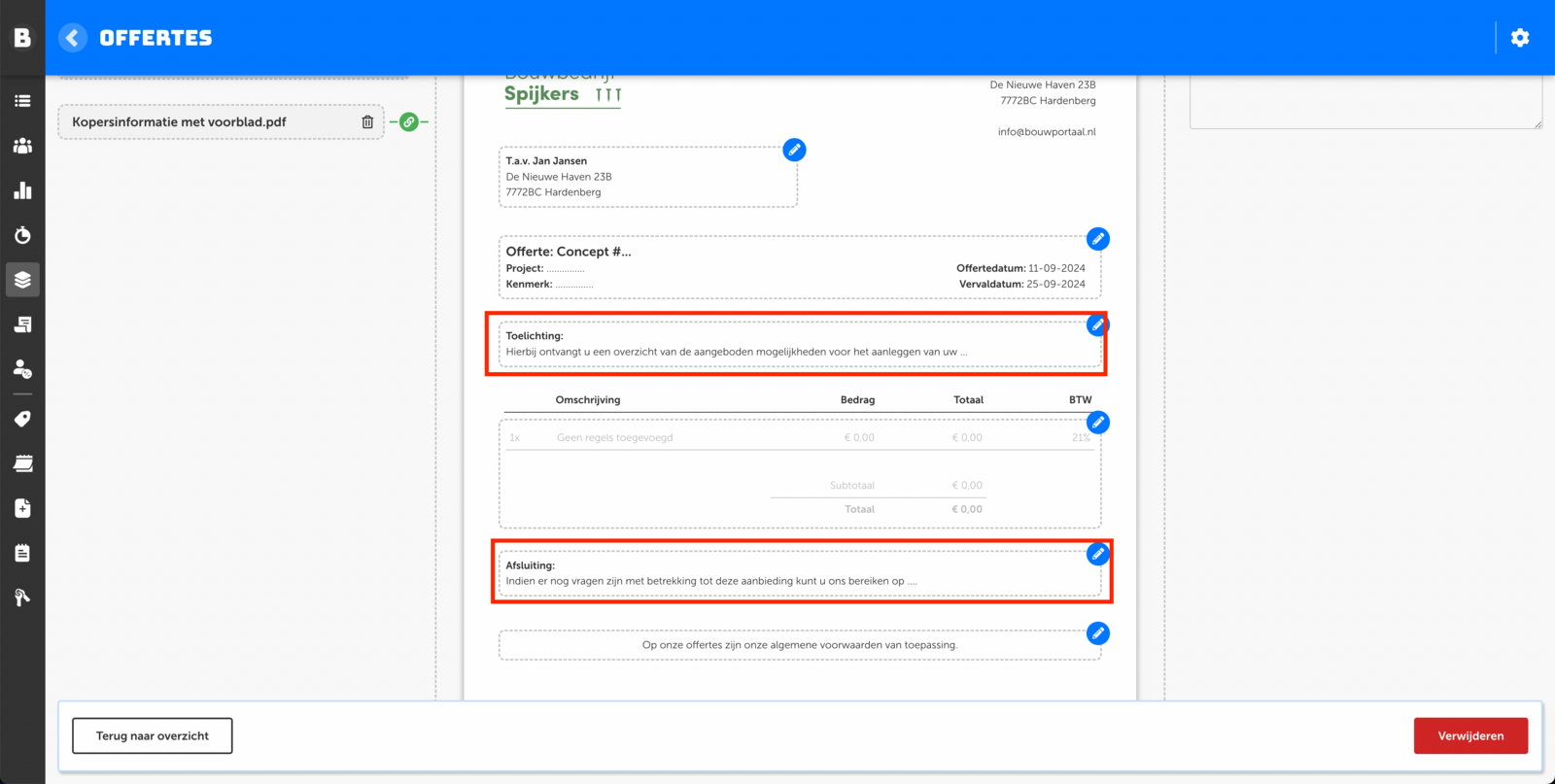 Stap 5: Offerte bijlages